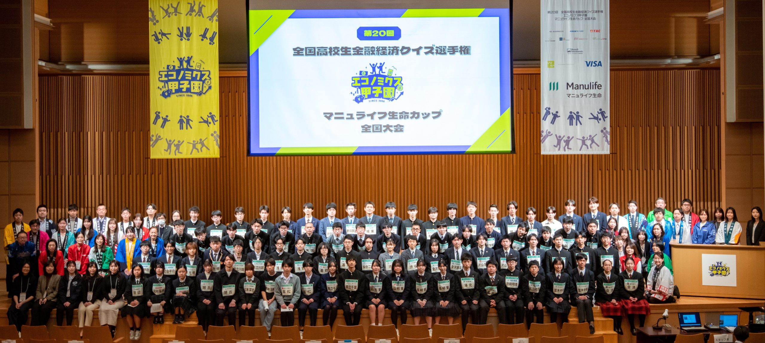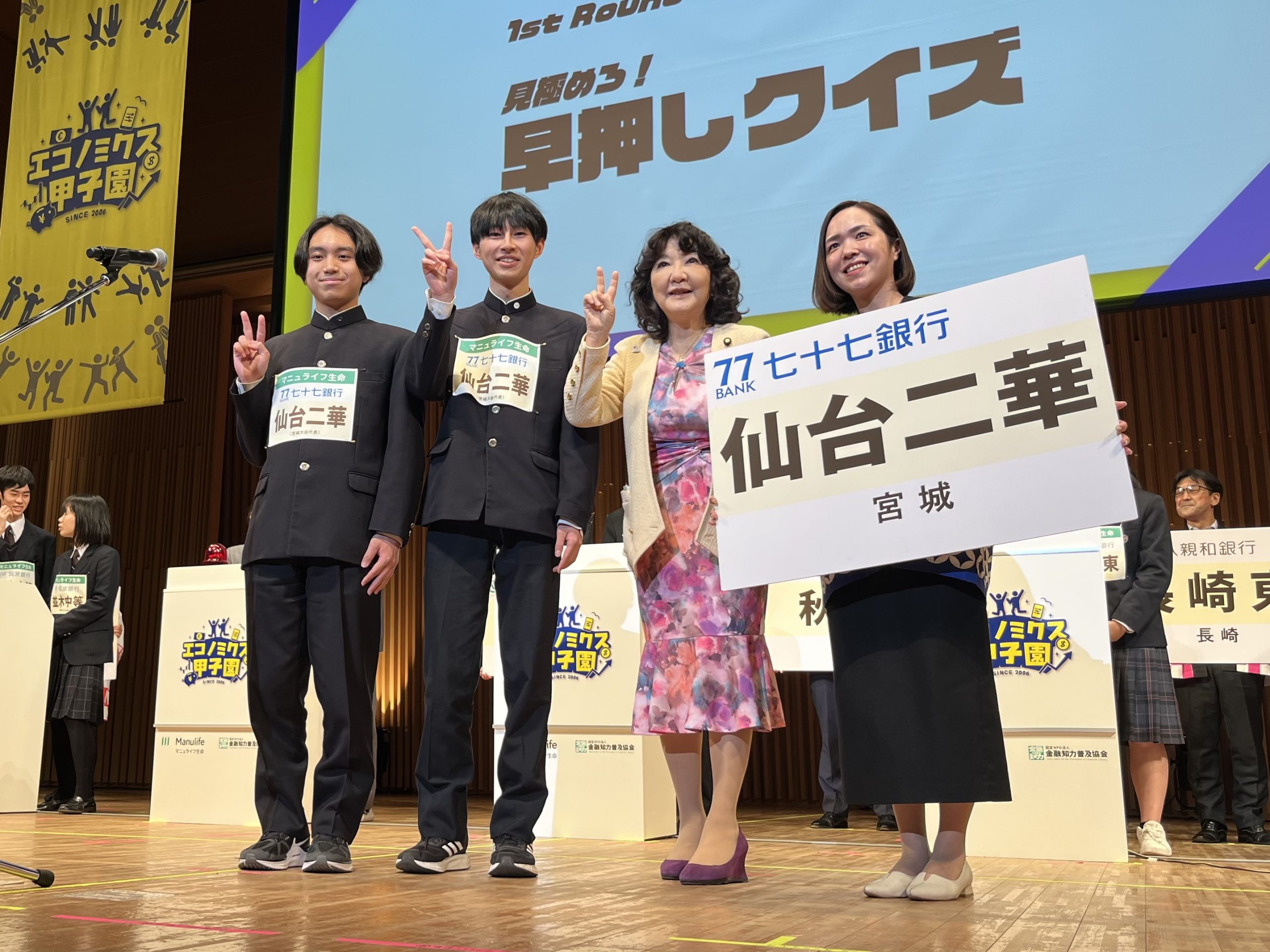 2月22日に弊協会が主催する「第20回全国高校生金融経済クイズ選手権 エコノミクス甲子園 マニュライフ生命カップ 全国大会」が無事終了し、神奈川大会代表の浅野高等学校が初の全国優勝となりました。優勝した2人にはニューヨーク研修旅行が贈呈されました。